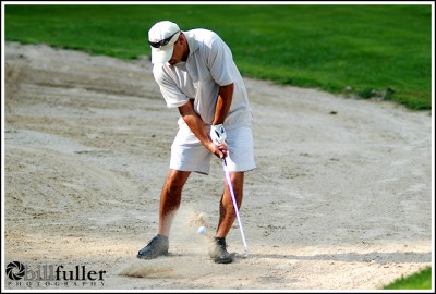 My friend James, blasting out of a bunker at Buffalo Valley Golf Course.