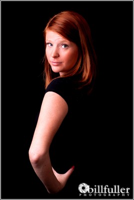 The above image was shot with a three strobe setup. A single soft-box was positioned to camera-left as the key light. A reflector umbrella was behind the camera at a 2:1 ratio from the key light. I used a strip-light soft-box to highlight the hair. Aperture was f/8.0 with a 1/100 second exposure.